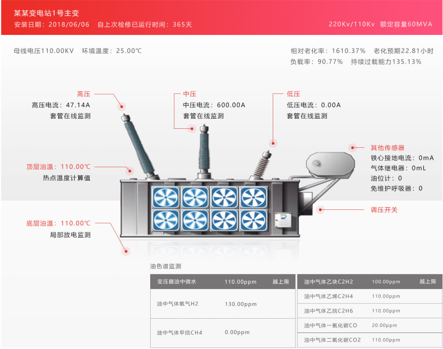 惠嘉與高校及電力公司合作研發的智能診斷系統:變壓器老化預測、運行狀態監控、故障診斷通過智能診斷系統,提供變壓器全壽命周期的綜合管理。